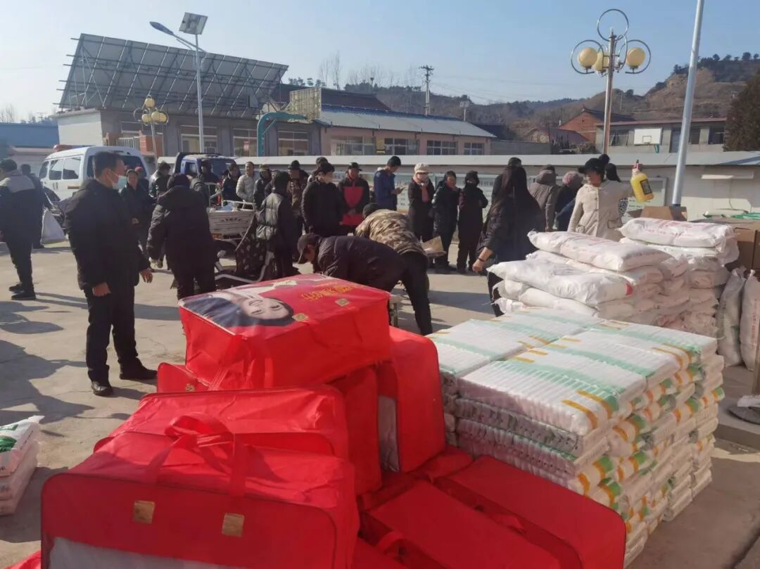 这次新春送温暖活动由爱心企业提供了三万余元的生活用品(米、面、油、面条),对特困家庭还送去了棉被和慰问金。上午九时爱心企业一行 7 人携带着慰问品准时到达村委会。在慰问团到来之前,村书记王占英早已把这一消息通过村里的大喇叭传达给了村民,很多村民早早地来到村委会迎接爱心企业人员的到来。在物品发放现场,村民井然有序的排队领取,大家相互帮助,你搬我拉,景象热闹非凡。